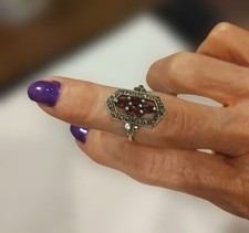 Vintage Silver Art Deco Ring with Garnet and Marcasite