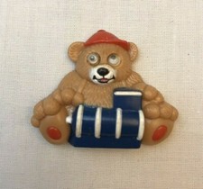 Teddy Bear Refrigerator Magnet Brown with Googly Eyes Toy Train Hat Vintage