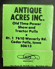Vintage Matchbook ANTIQUE ACRES INC. TRACTOR PULLS CEDAR FALLS IOWA UNSTRUCK #I