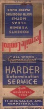 Vintage Matchbook HARDER EXTERMINATION SERVICE 73 Jerusalem Ave HEMPSTEAD L.I.