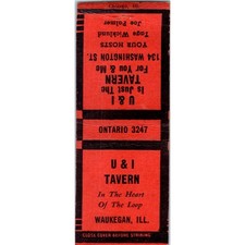 U & I Tavern Waukegan Illinois Vintage Matchbook Cover SF4-Y4