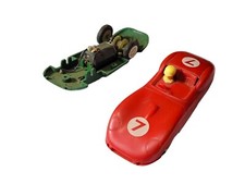 SET OF 2 - Vintage MARX Toys Slot Race Car 1/32 - RED #11 + GREEN Racing, RARE