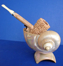 Antique 1960'S Mother of Pearl 4" Sea Shell Pipe Holder Ash Tray on Shell Stand