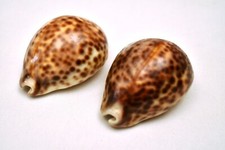 Antique Pair of Tiger Cowrie Shells Natural Cypraea Tigris Glossy Spotted Shells