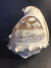 An Antique Bullmouth Helmet Shell / Hand Sculptured / Sea Landscape Italy 1920
