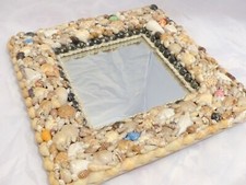 RARE Antique FRENCH c1920 SHELL ART Seashell Encrusted 12" Square MIRROR