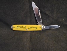 COCA COLA COKE Advertising Knife Made In USA 2 Blade Jack Smooth Yellow Handles