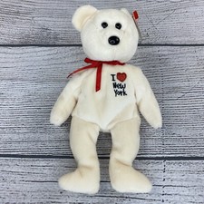 Beanie Babies TY Vintage 2003 I Love New York Small Cream Teddy Bear Plush Toy