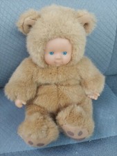 VINTAGE ANNE GEDDES BABY DOLL IN TEDDY BEAR COSTUME BLUE EYES SIMBA TOYS 8 INCH