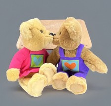 Hallmark Kissing Teddy Bears Plush Love Kiss Pink Purple Magnetic Noses 10" Vtg