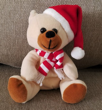 Vintage Ho Ho Beans Teddy Bear 7” Collectible Plush Christmas Bear Hat and Scarf