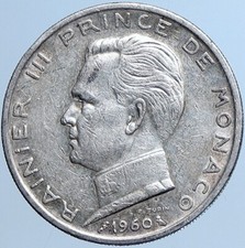 1960 MONACO King Rainier III Crown Antique Genuine Silver 5 Franc Coin i113823