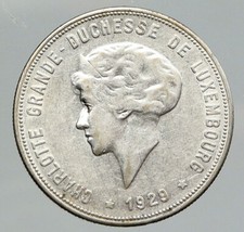 1929 LUXEMBOURG w Grand Dutchess Charlotte Antique Silver 5 Francs Coin i80308