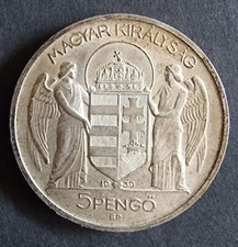 1939 HUNGARY Admiral Miklos Horthy Antique Silver 5 Pengo Hungarian Coin