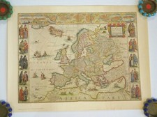A NEW AND EVROPA MAP OF THE WORLD Antique Vintage Poster