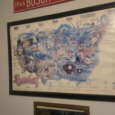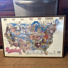 1987 Vintage USA Baseball Teams Map Poster MLB Wall Art Framed 37x25