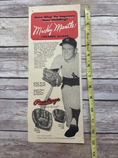 1957 Mickey Mantle Rawlings Gloves Advertising Poster, Rare Design, 5" x 13"