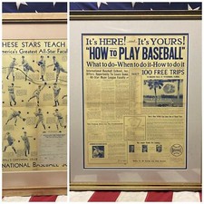 Vintage 1939 International Baseball School Advertising Poster Double Side Frame