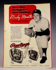 1957 Mickey Mantle Rawlings Gloves Advertising Poster, Rare Design, 10" x 13.5"