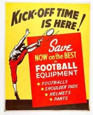 Vintage 1950's "Kick-Off Time Is Here" Football Broadside Advertising Poster