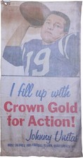1960's Baltimore Colts Johnny Unitas Crown Gas Cloth Advertising Sign 80" X 42"