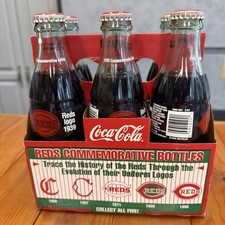 1995 Coca Cola Cincinnati Reds Soda Advertising 6 Bottles 1909 MLB Logo Baseball