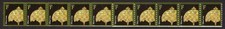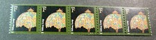 Scott Stamp # 3758, (1c) Miss-cut TIFFANY LAMP, Strip of 5 w/Coil # MNH