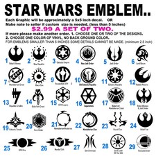 Decal Die Cut Vinyl sticker Star Wars Emblems Insignias logo Set of 2.