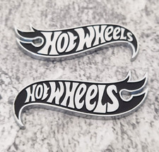2x Metal Hotwheels Decal Emblem Hood Badge Black Silver Hot Wheels Fender Lid