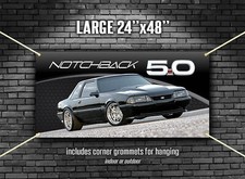 Mustang LX Fox body Notchback Black garage art flag banner 24"x48" hot wheels