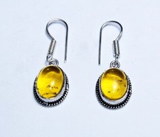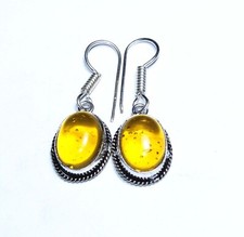 Top Amber Oval Shape Gemstone Handmade Earring Jewellery Size 1.5 Inches