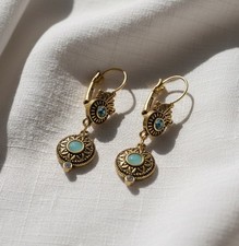 Museum Mandala Gold Earrings Antique Painting Flower Medieval VTG Teardrop Tile
