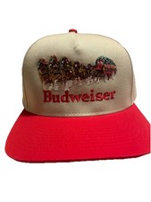 Vintage Budweiser Clydesdale Red/White Cloth, Snapback Truckers Hat Made In USA