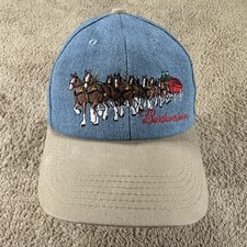 Vintage Budweiser Clydesdales Blue Denim Tan Strapback Hat Cap K-Products USA