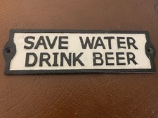 Cast Iron Save Water Drink Beer Antique Vintage Style Man Cave Plaque (8”X2.25”)