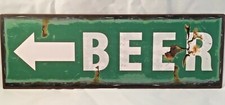New Printed Green and White Metal BEER Sign with Arrow, Antique Look