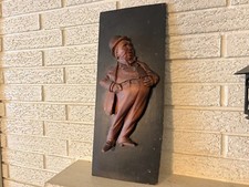 Antique Portly Englishman in suit and Bowler Hat Wood Carving for bar door sign