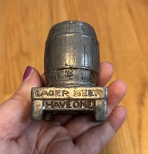 Antique Small Metal Beer Barrel Toothpick Holder Bar Decor Lager Beer Have One