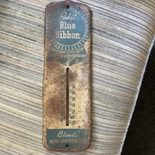 Vintage Pabst Blue Ribbon PBR Beer Advertising Metal Thermometer Sign