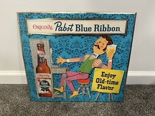 vintage original pabst blue ribbion beer cardboard foil sign advertising display