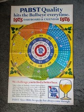 NEW ‘75-76 Pabst Blue Ribbon Bullseye Calendar Dartboard Beer Poster Advertising