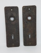 Lot of 2 Antique Art Deco Ornate Door Skeleton Key metal plate
