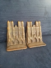Rare Antique 1914 Armor Bronze Rheims Cathedral Electroplate Bookends Souvenir