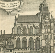 1720 antique drawing ST. DONATIAN'S CATHEDRAL BRUGES BELGIUM by P Devel