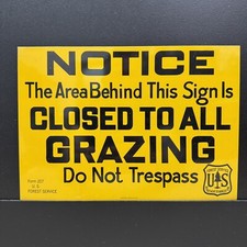 Vintage USFS US Forest Forestry Service CLOSED TO ALL GRAZING Advertising Sign