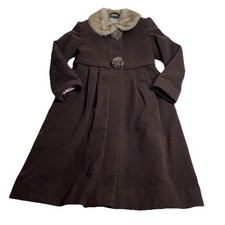 Rothschild Coat Girls 10 Brown Wool Blend Princess Swing Style Fur Collar Roses