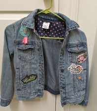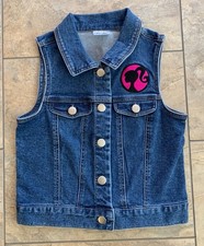 Barbie Girls Medium 7-8 Denim Vest Embroidered Patch Blue Jean Retro Y2K