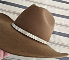 Equine Care Leather Cowboy Hat Genuine Cowhide Antique Brown Wide Brim Men Women