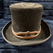 Steampunk Deadman Black Cow Hide Leather Top Hat Motorcycle Rider Biker Antique