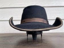 Cowboy Hat Antique Black Oval Concho Leather Band Costume Cosplay Western